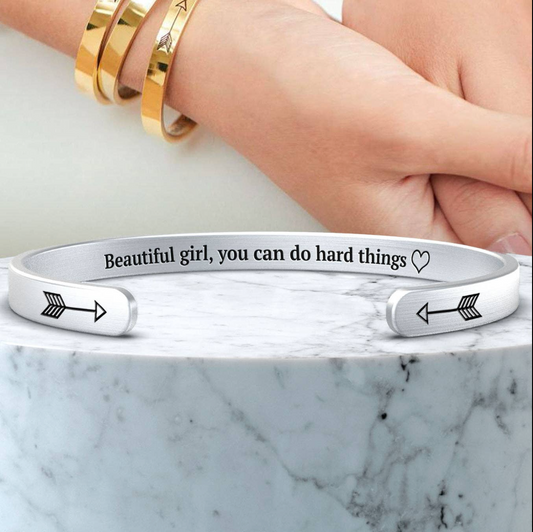 Beautiful Girl, You Can Do Hard Things- Inspire Bracelet