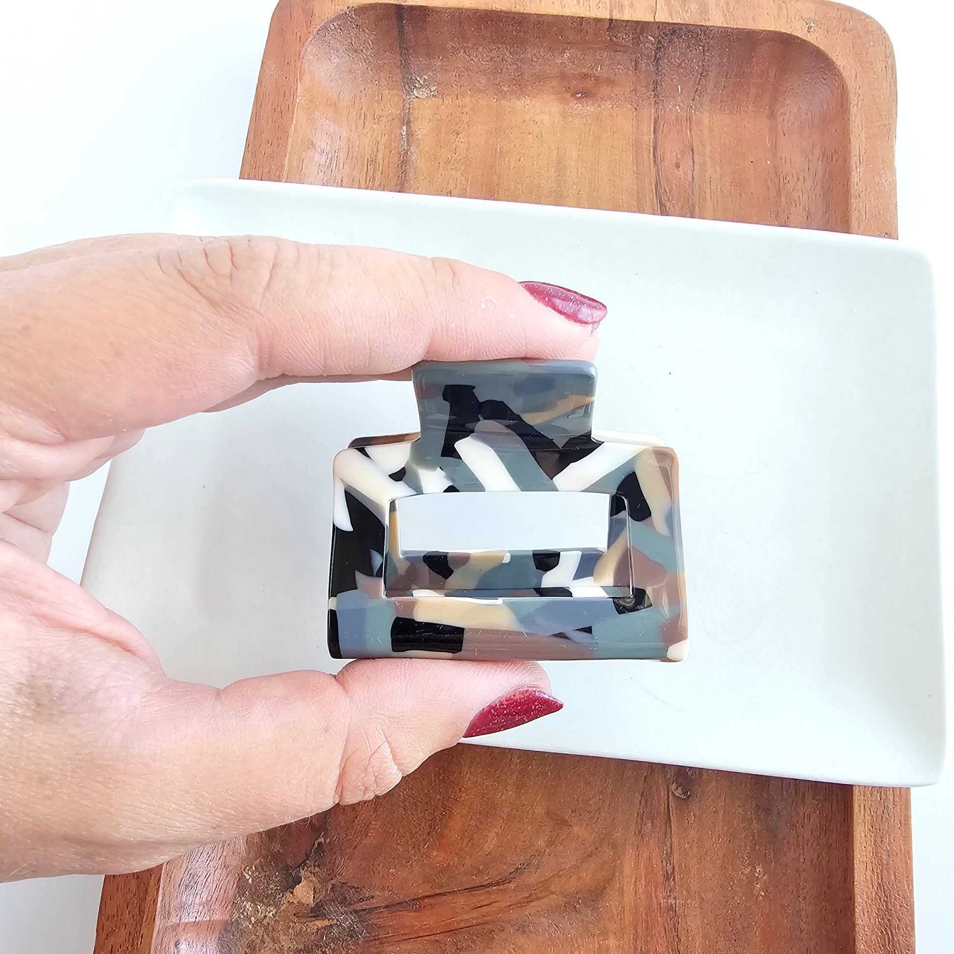* Plant-based acetate acrylic hair claw with a clear protective cover over the spring.