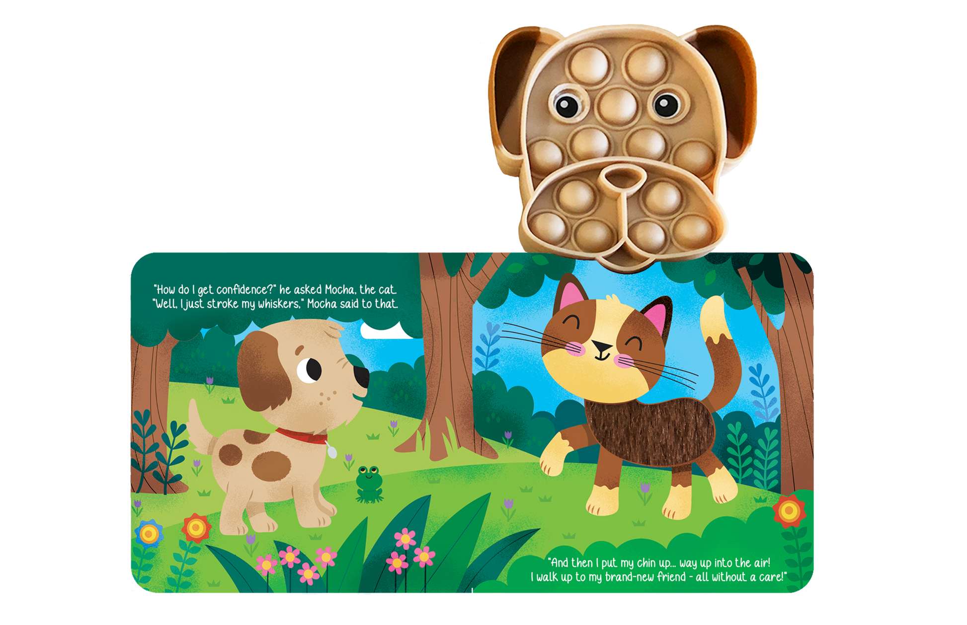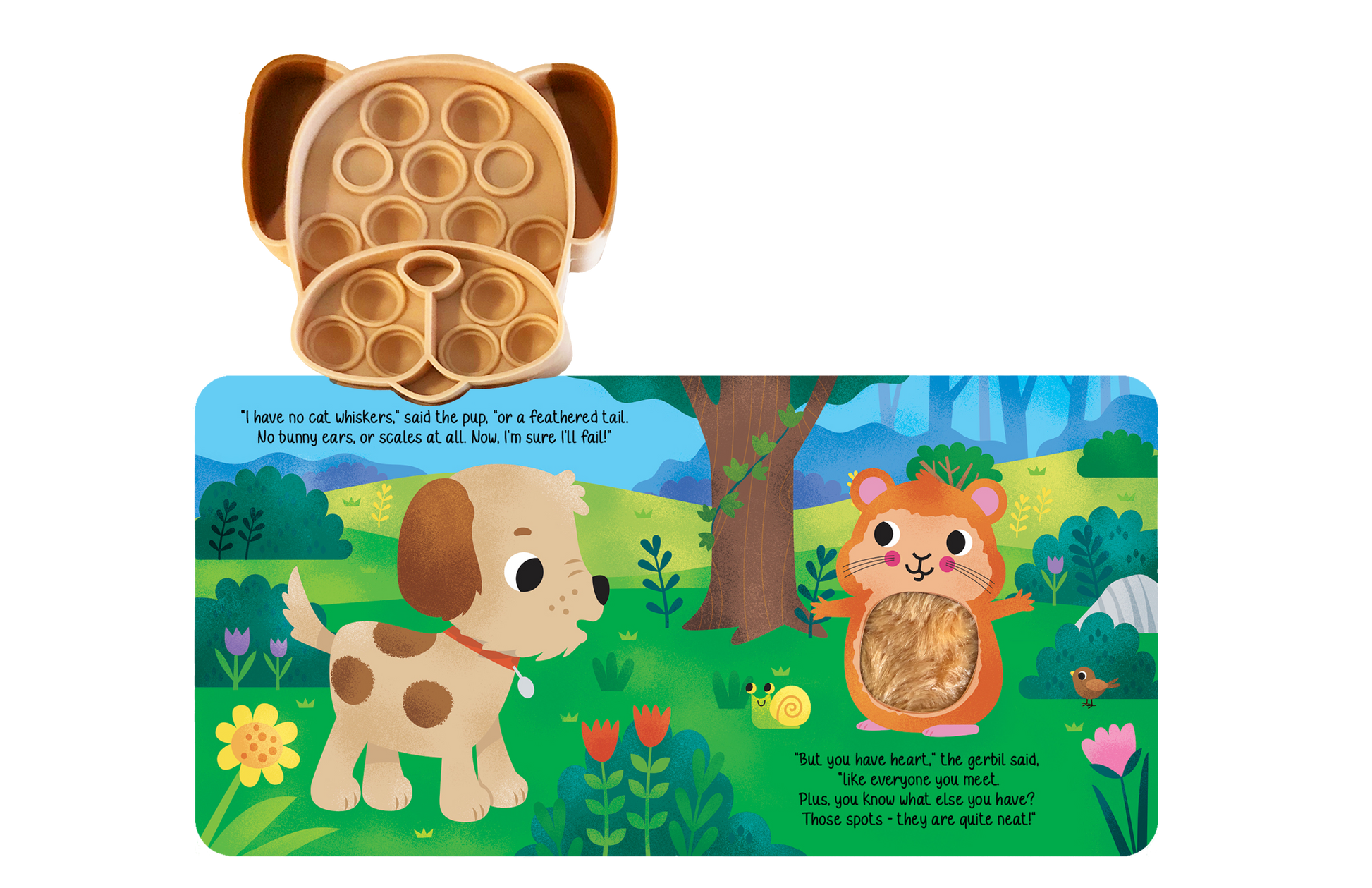 This sensory Puppy playmate is designed to captivate with a character-shaped fidget fun pop-it head and multiple touch-and-feel elements. Kids can touch, crinkle, and pop as they read along.