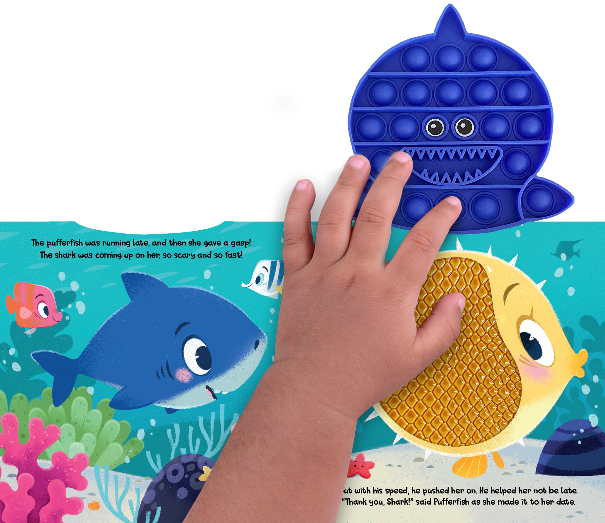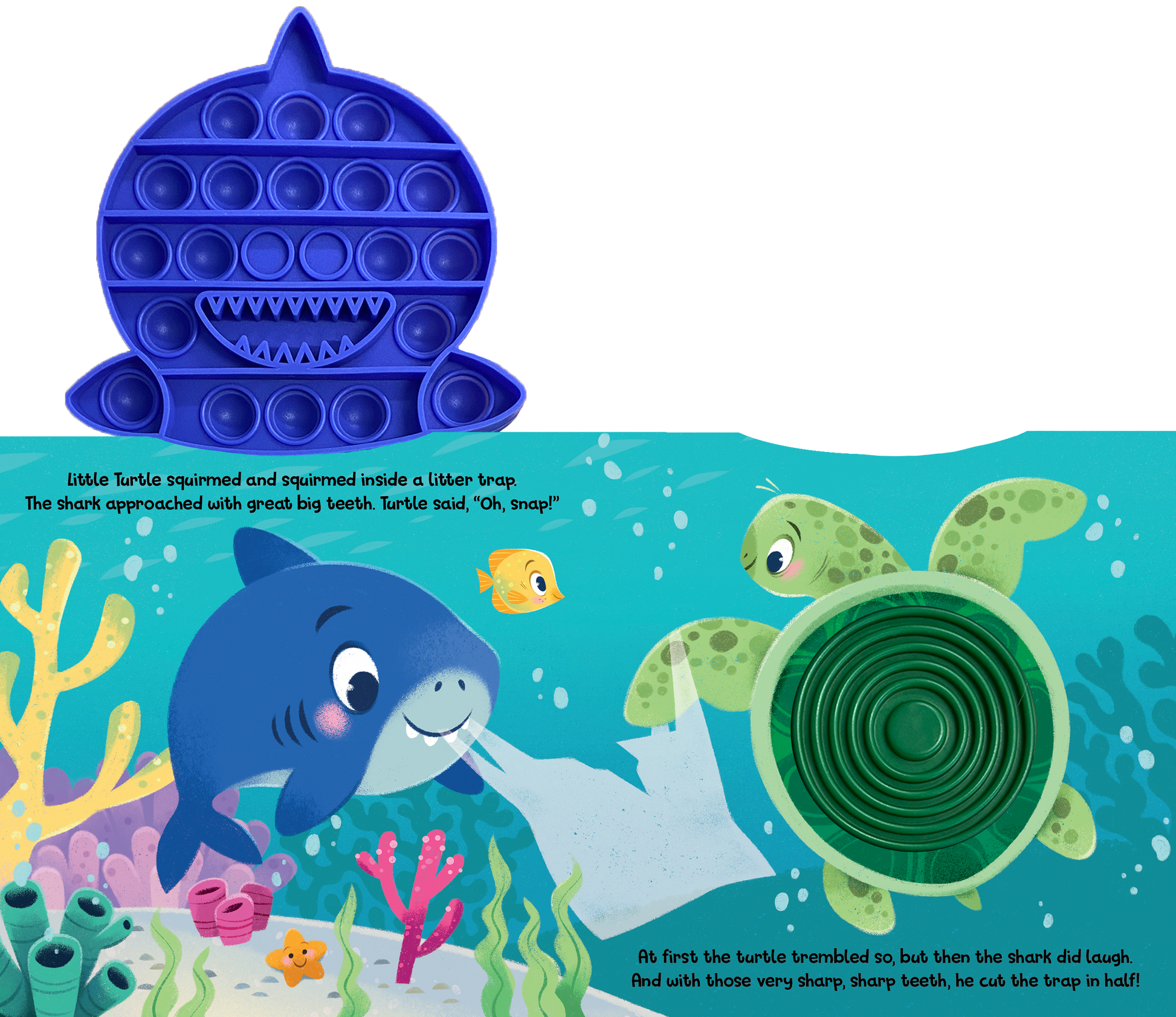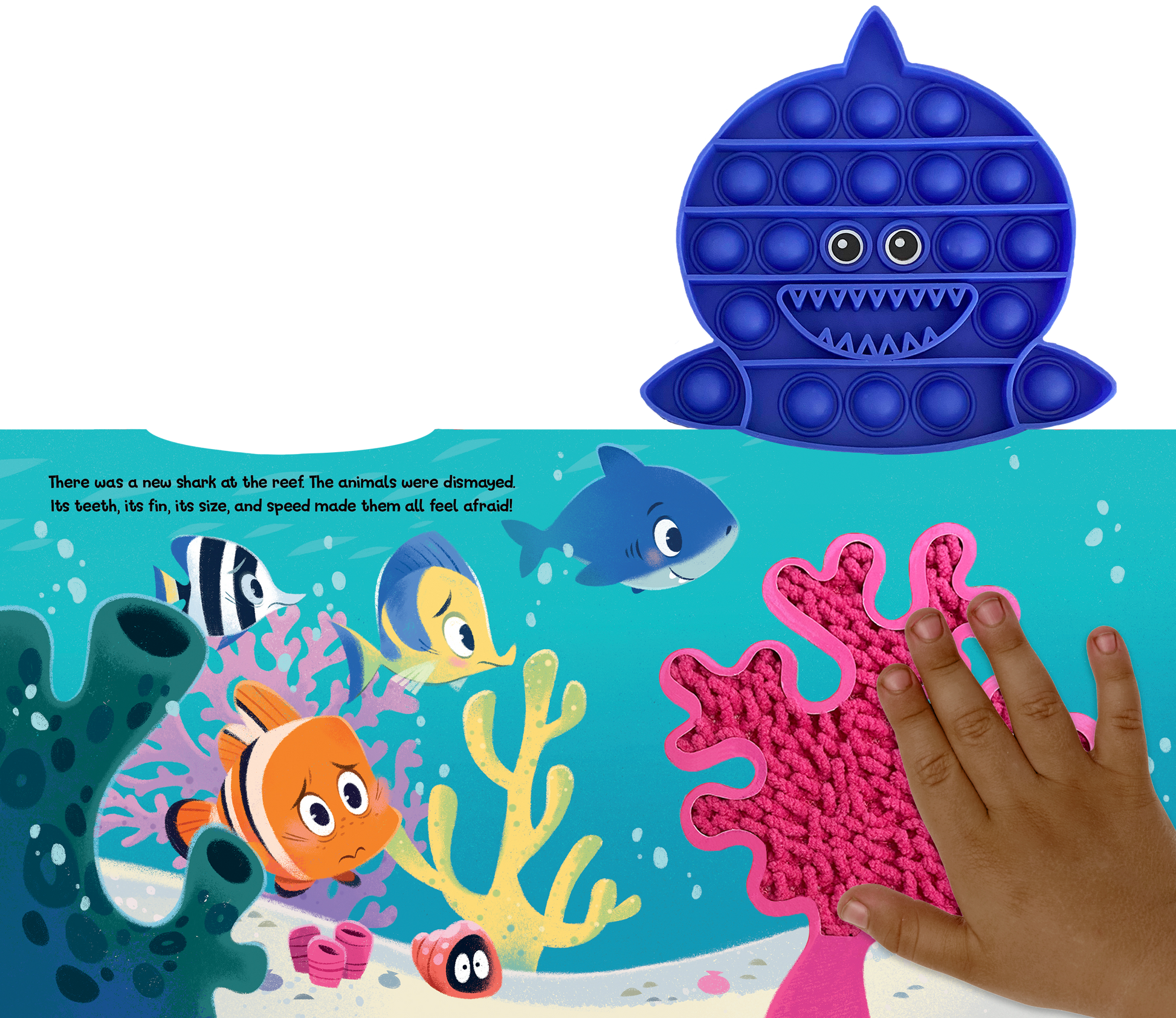 This sensory Shark playmate is designed to captivate with a character-shaped fidget fun pop-it head and multiple touch-and-feel elements. Kids can touch, crinkle, and pop as they read along.