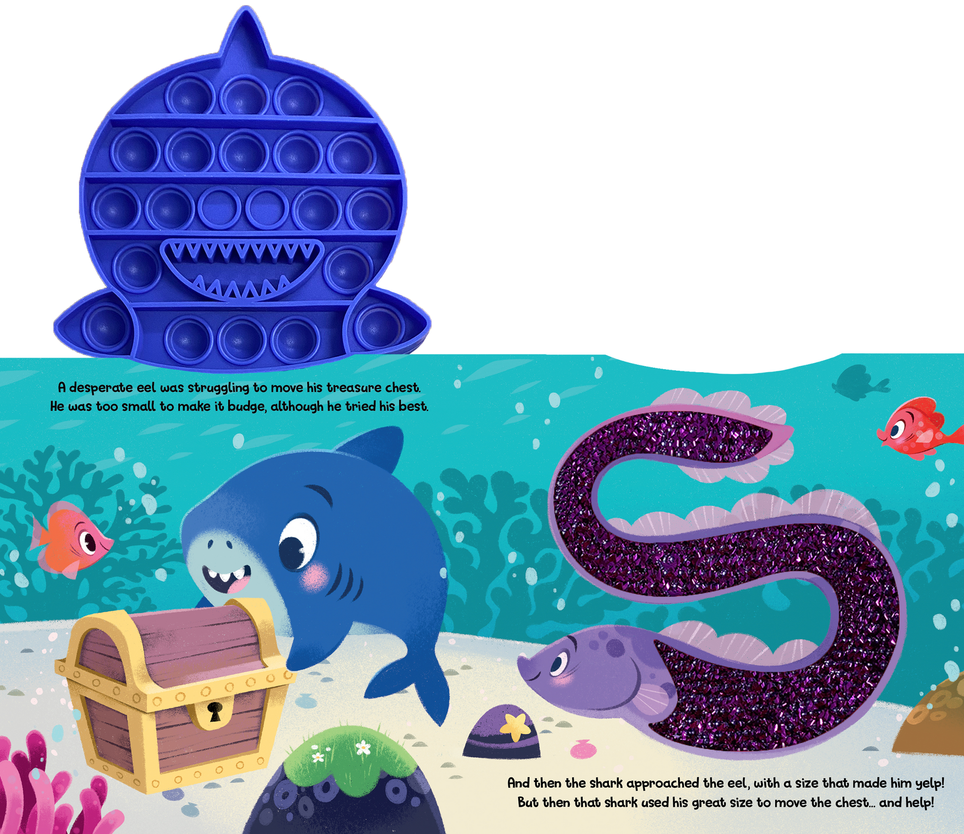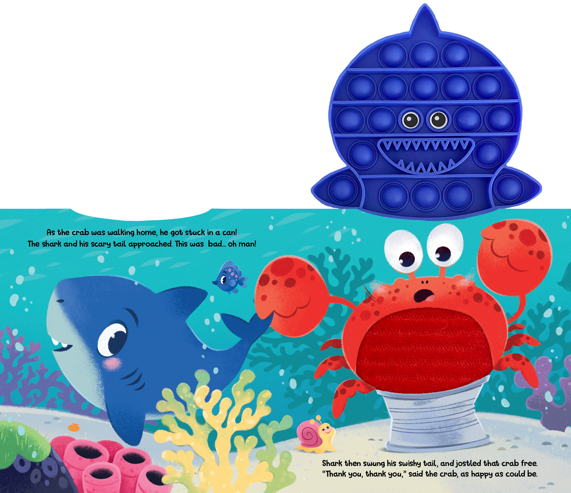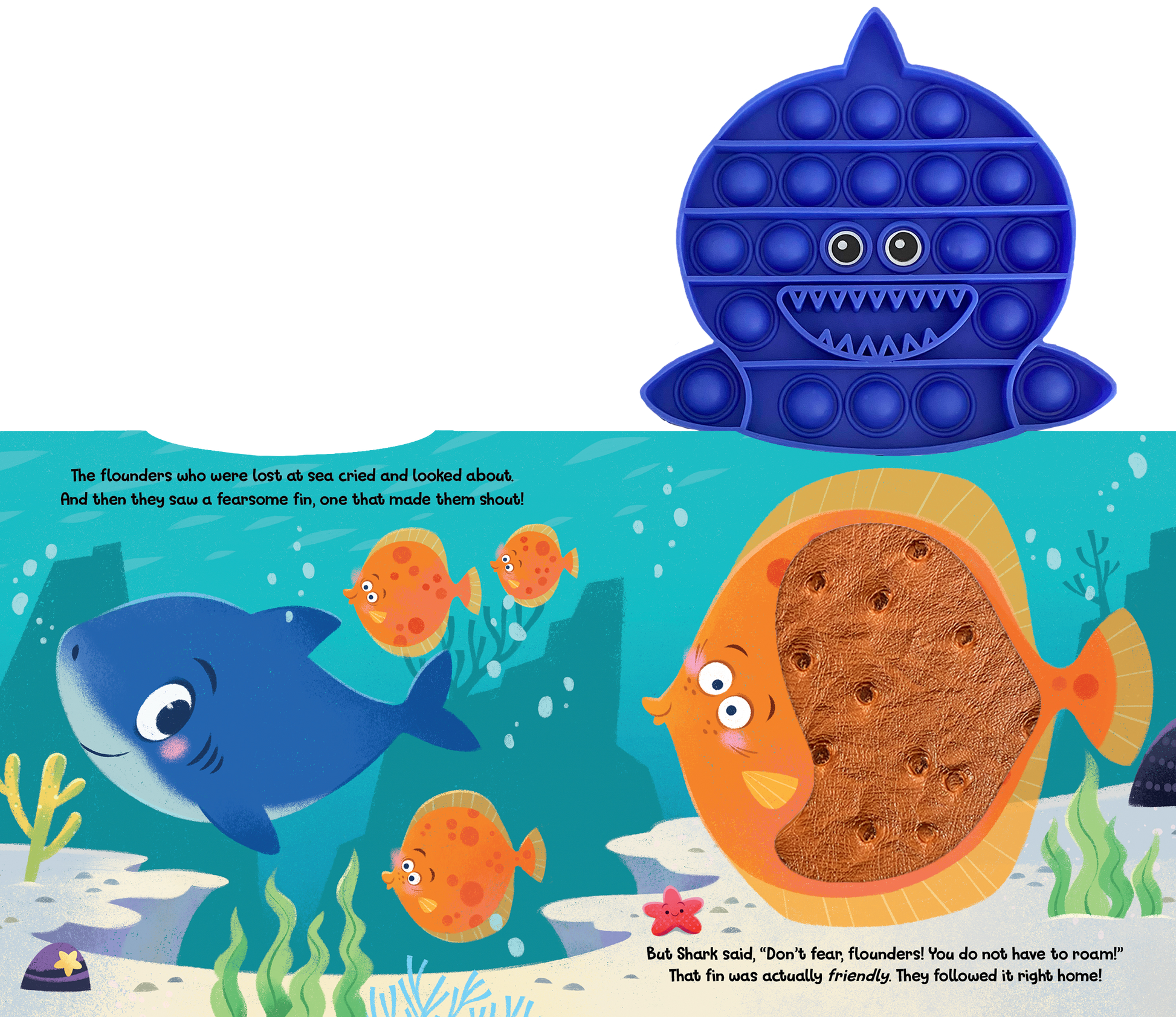 This sensory Shark playmate is designed to captivate with a character-shaped fidget fun pop-it head and multiple touch-and-feel elements. Kids can touch, crinkle, and pop as they read along.