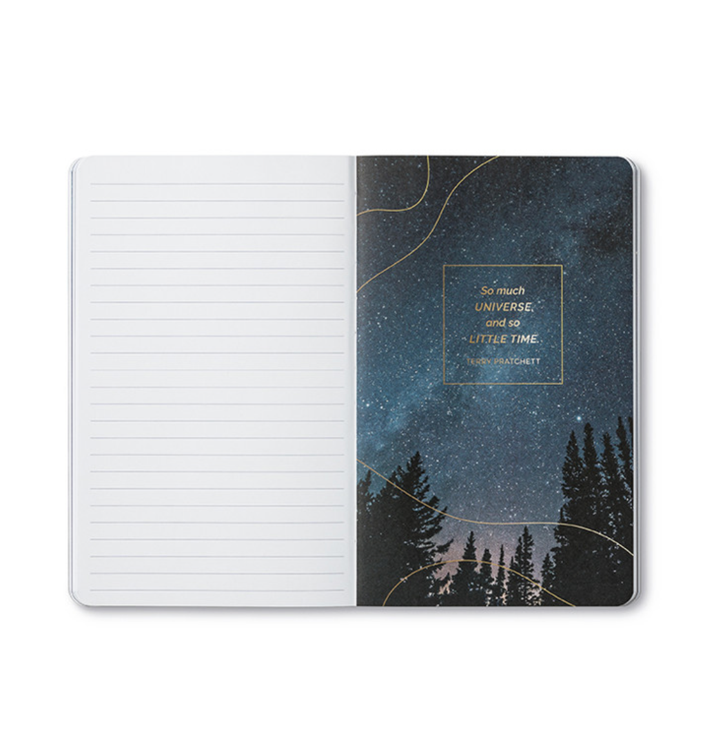 The starry motif of this awe-inspiring journal is an invitation to consider the magnificence all around you. It’s perfect for bringing a bit of wonder to your day.