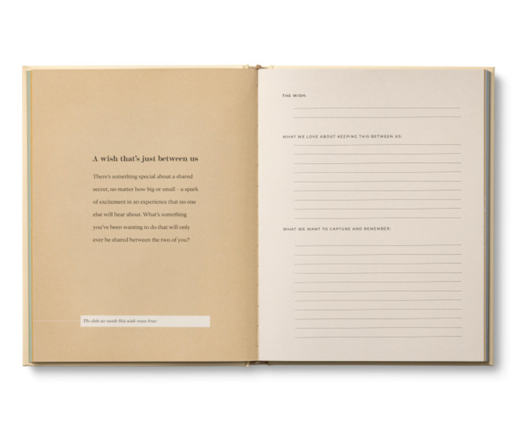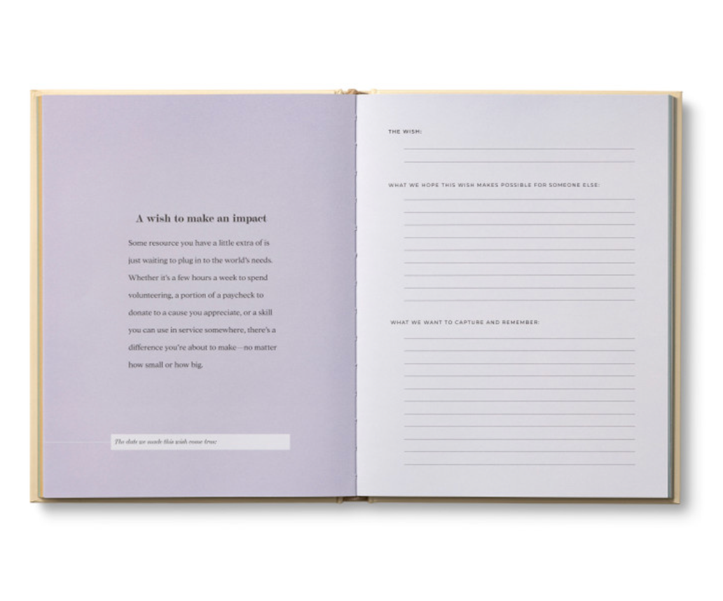 This couples’ dream journal offers a space for you and your partner to share your hopes, dream out loud together, and let the simple act of wishing bring joy to each day. Inside, you’ll find meaningful prompts to help you identify 27 different wishes in six categories alongside inspiring quotes and space to capture how each wish comes true.