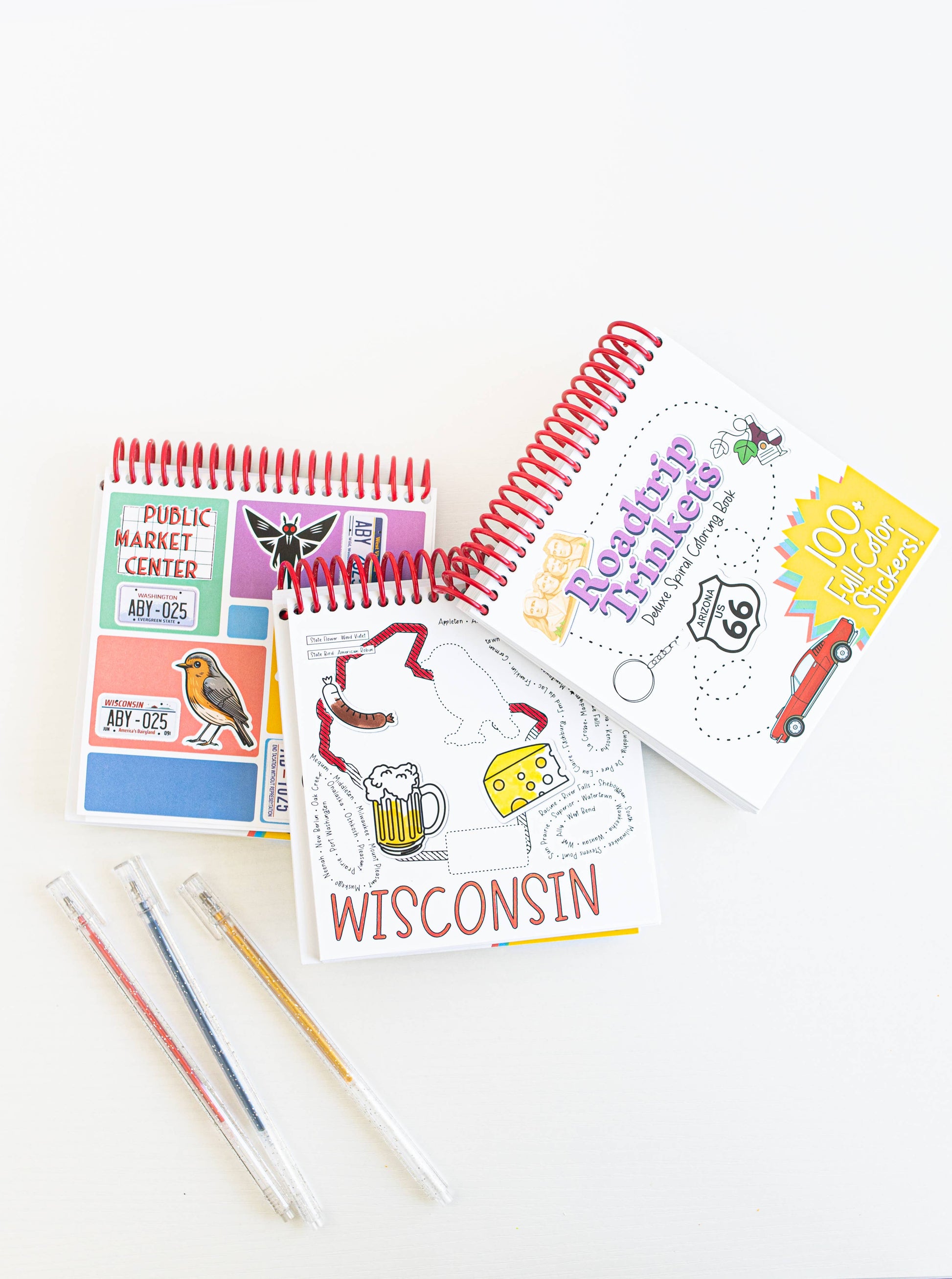 Roadtrip Trinkets Deluxe Spiral Coloring Book with Stickers
