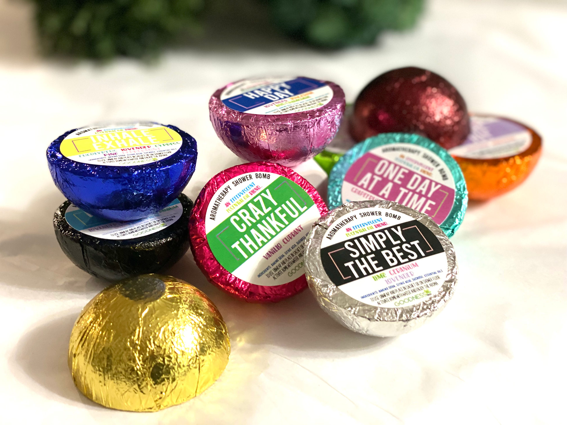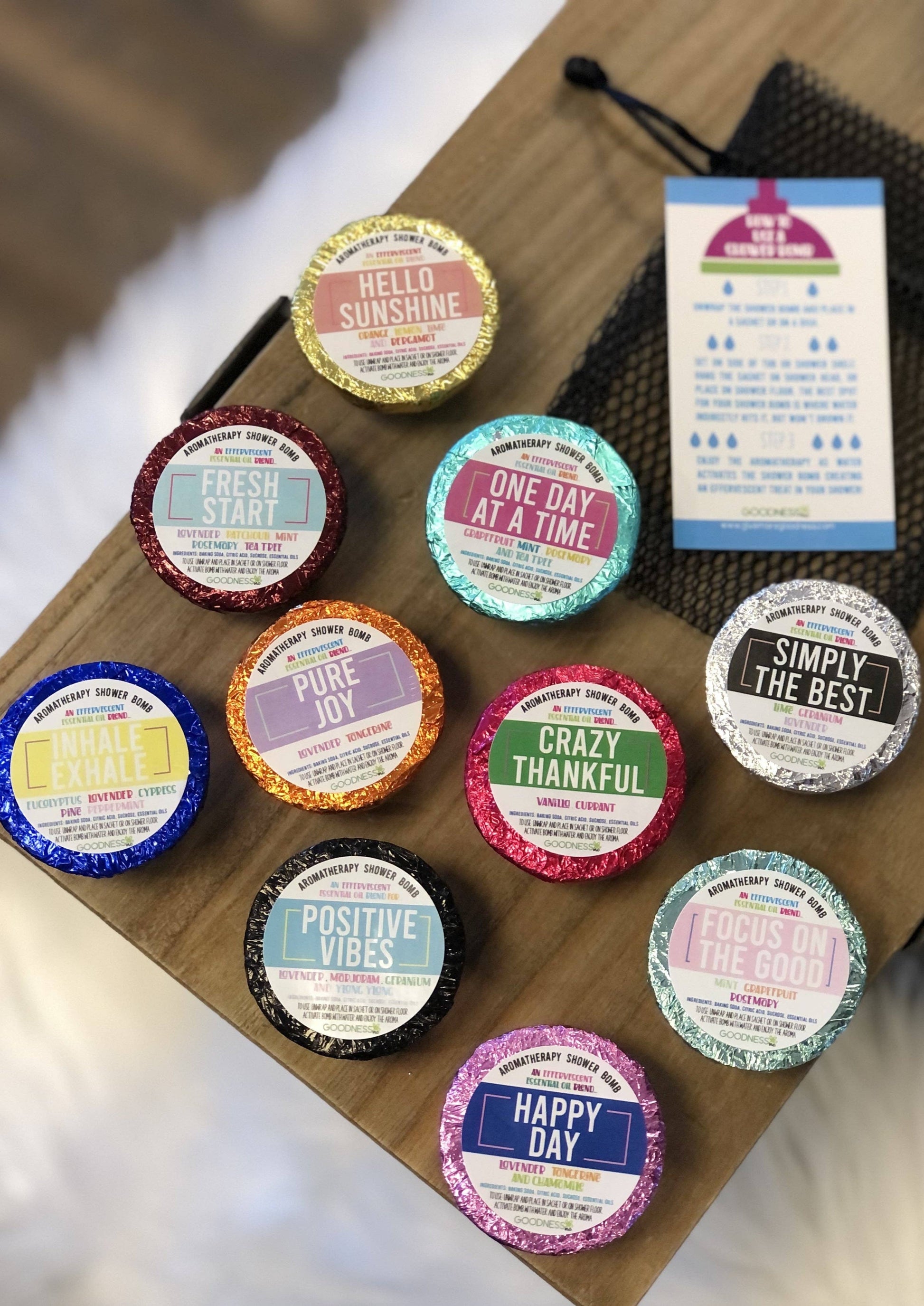 Step 1: Unwrap the shower bomb and place in a sachet (sold separately) or on a dish.