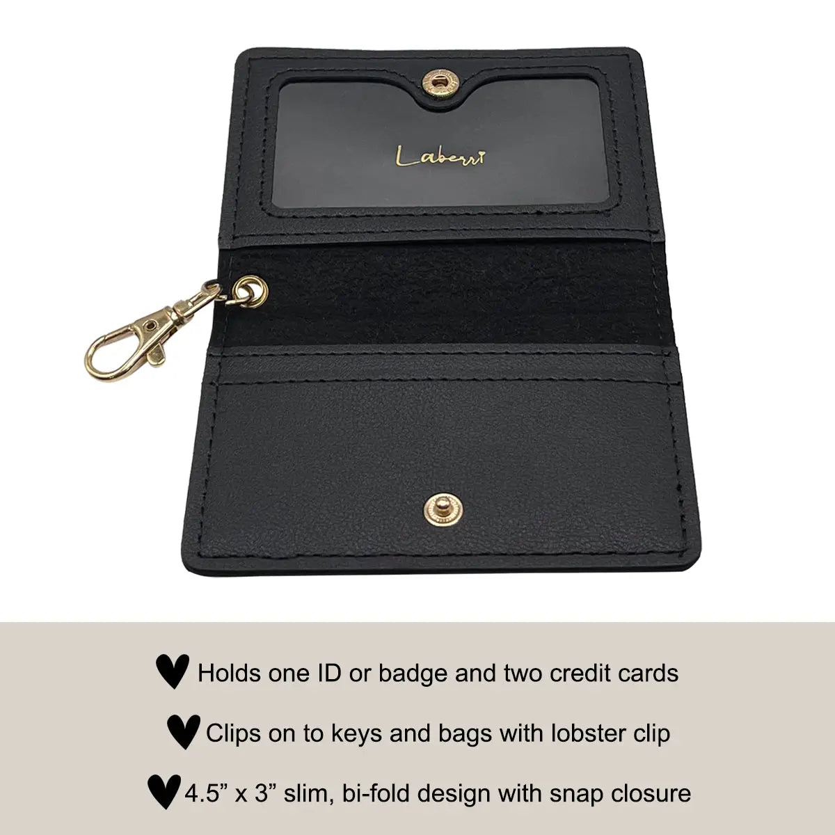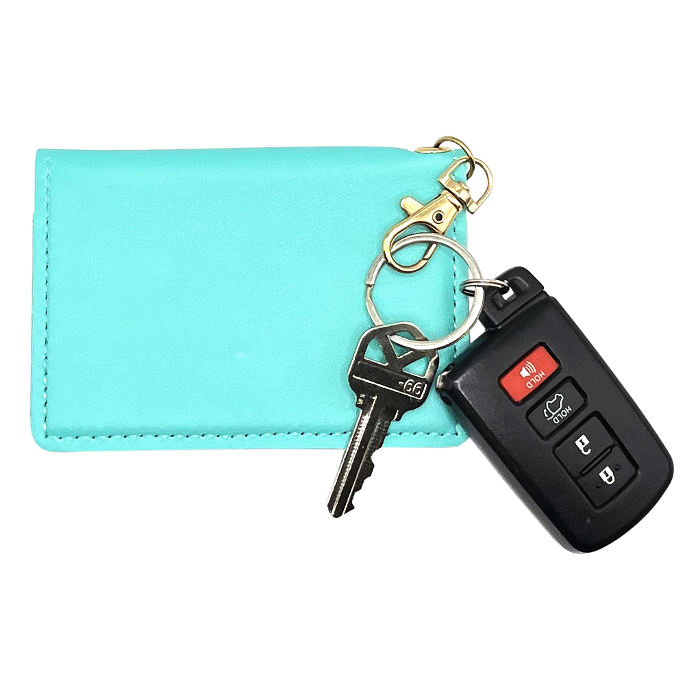 Introducing our sleek Slim Wallet, complete with a convenient snap closure and a practical key ring attachment.
