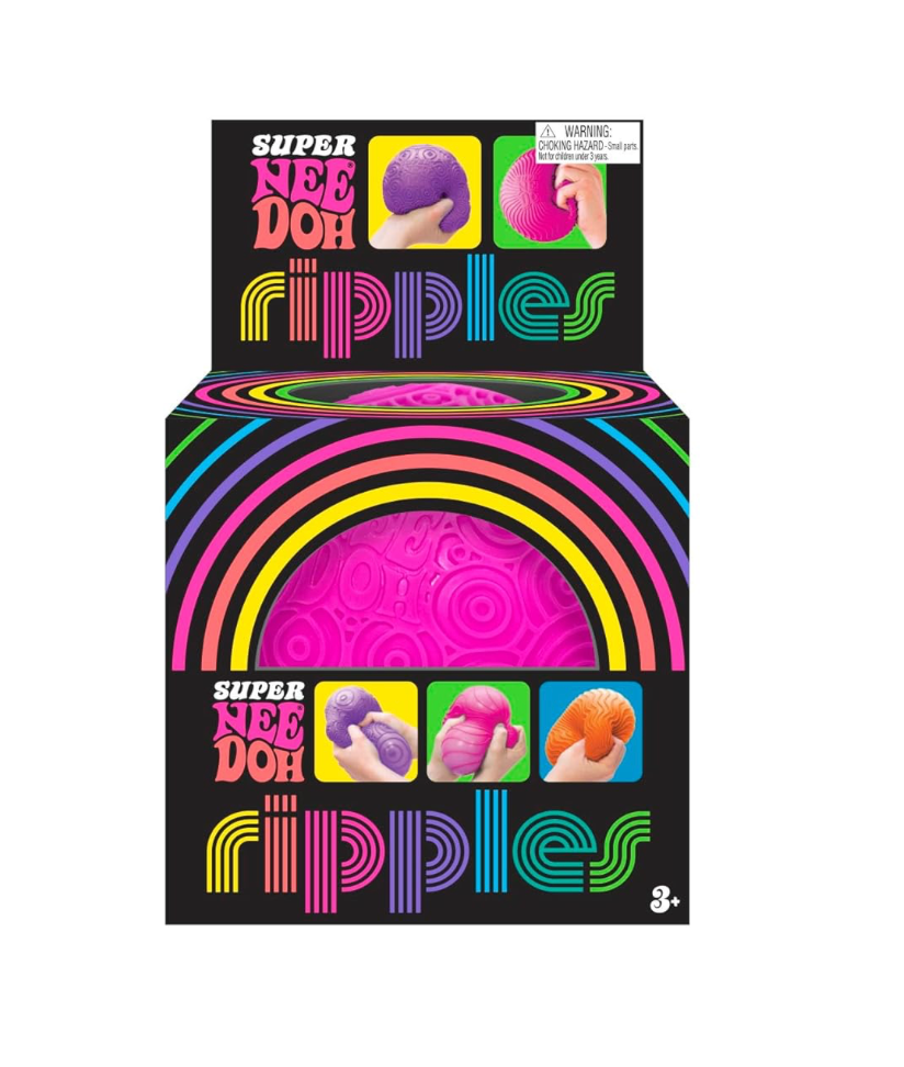 Available in four vibrant neon colors and two intriguing textures, the Super NeeDoh Ripples is designed to delight kids and adults alike